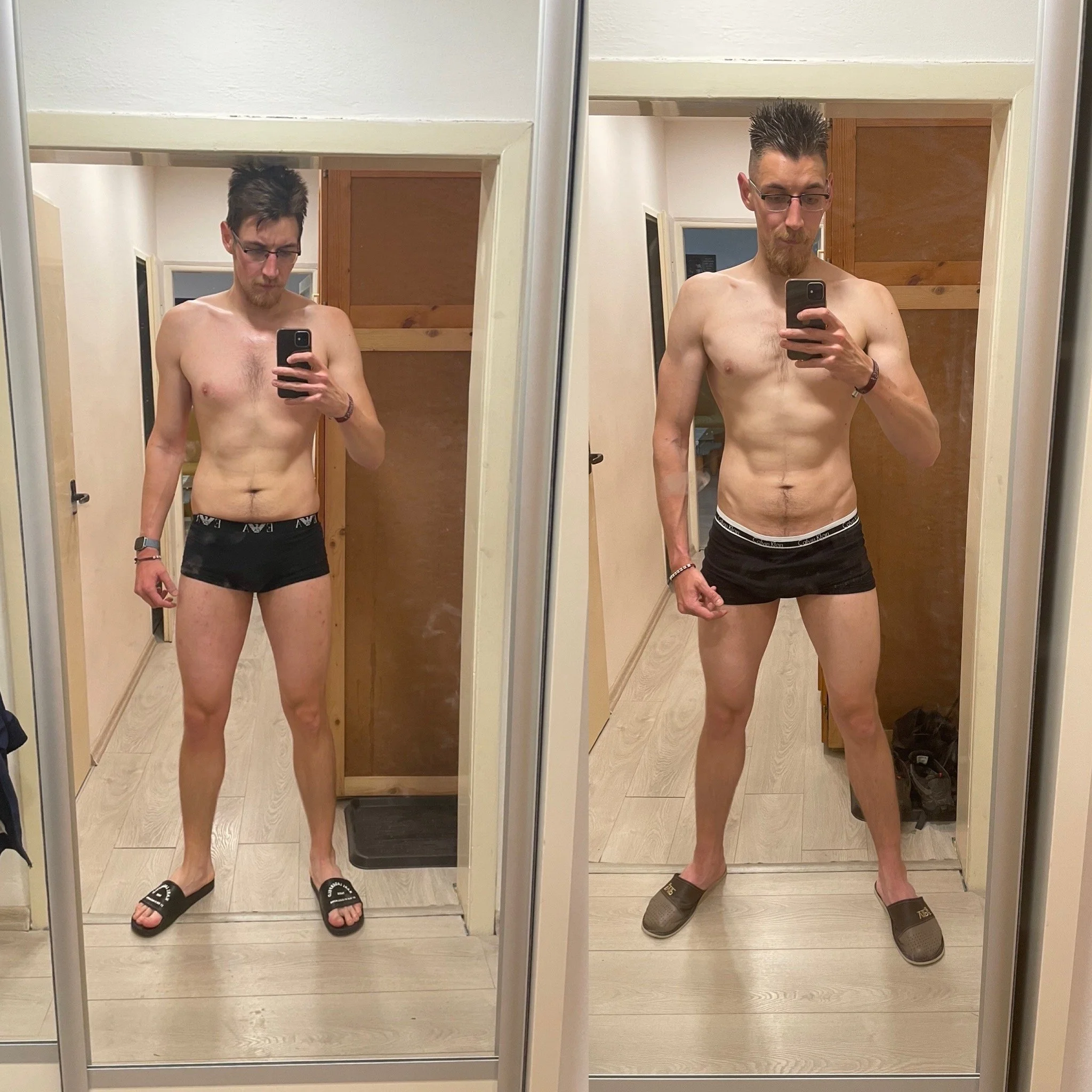 Tomáš postupne plynule zhadzoval tuk a zlepšoval svoju postavu. Za 3 mesiace nakoniec zhodil celkovo 5 kg a išliel z 18,7 na 13,8% tuku. Svaly nestratil žiadne!